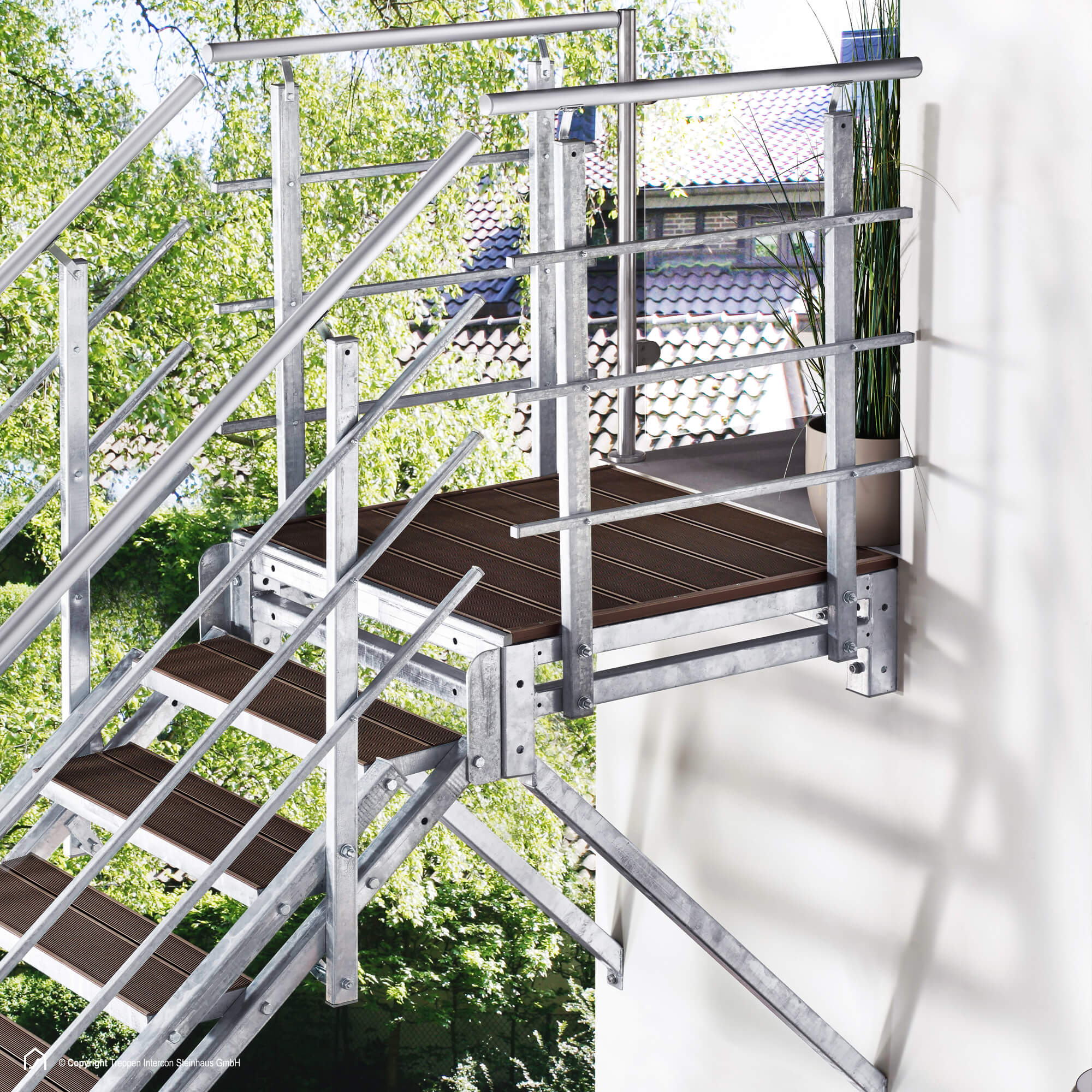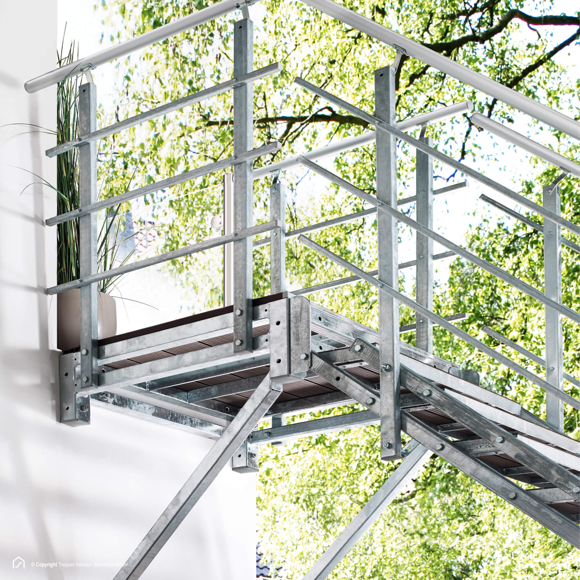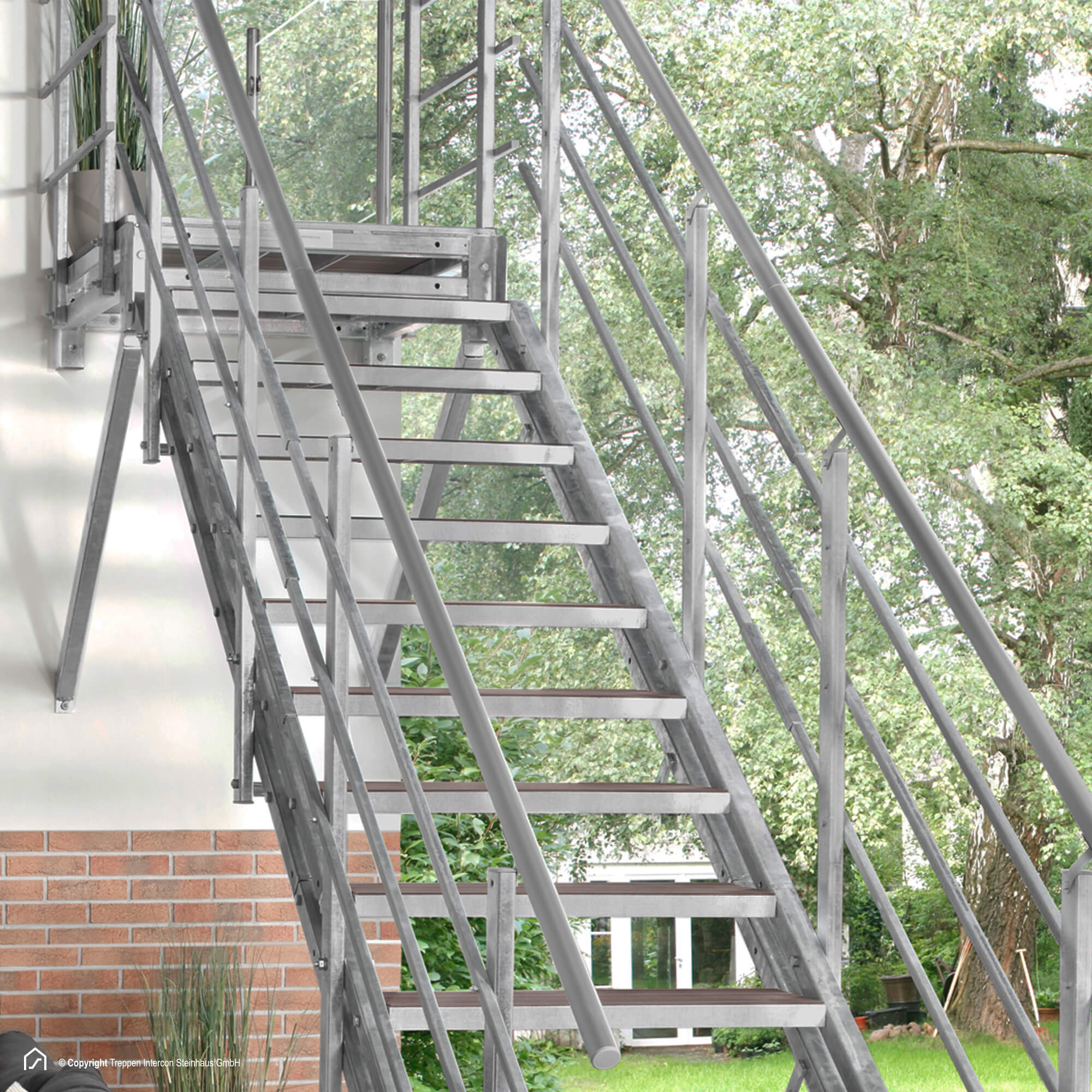 - Außentreppe mit 4 bis 18 Stufen und einem Podest mit geradem Ausstieg