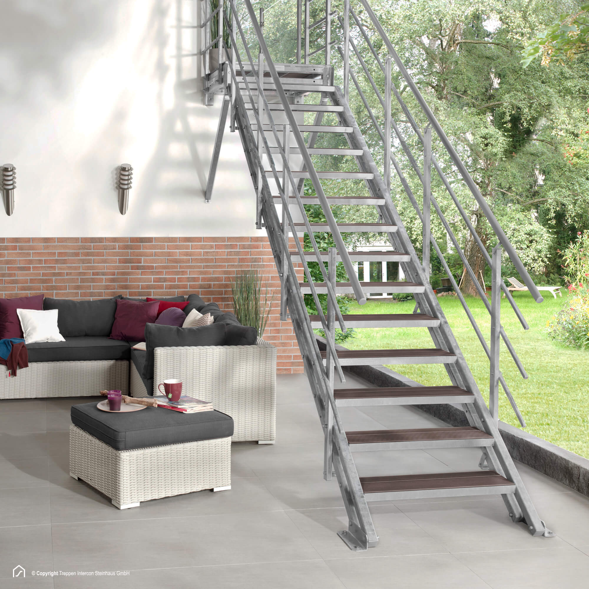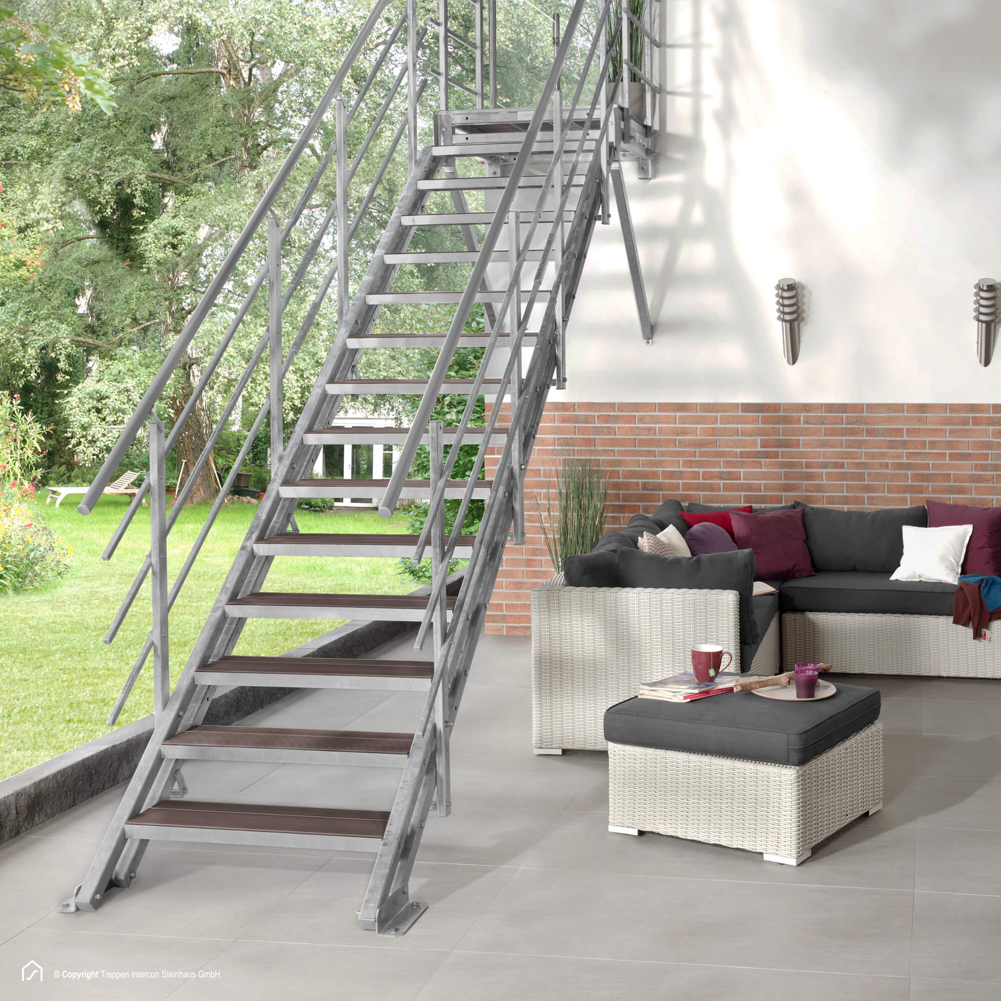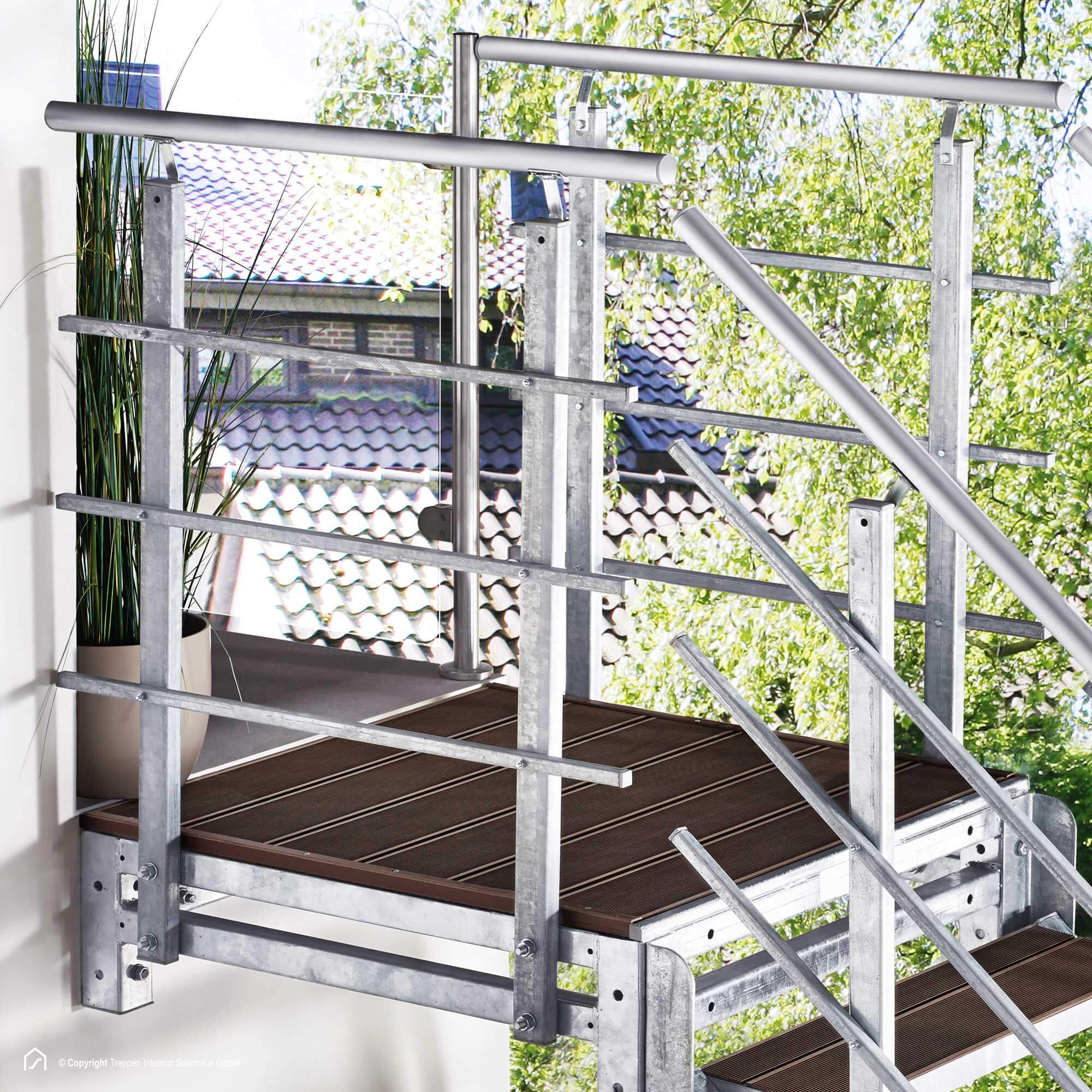 - Außentreppe mit 4 bis 18 Stufen und einem Podest mit geradem Ausstieg