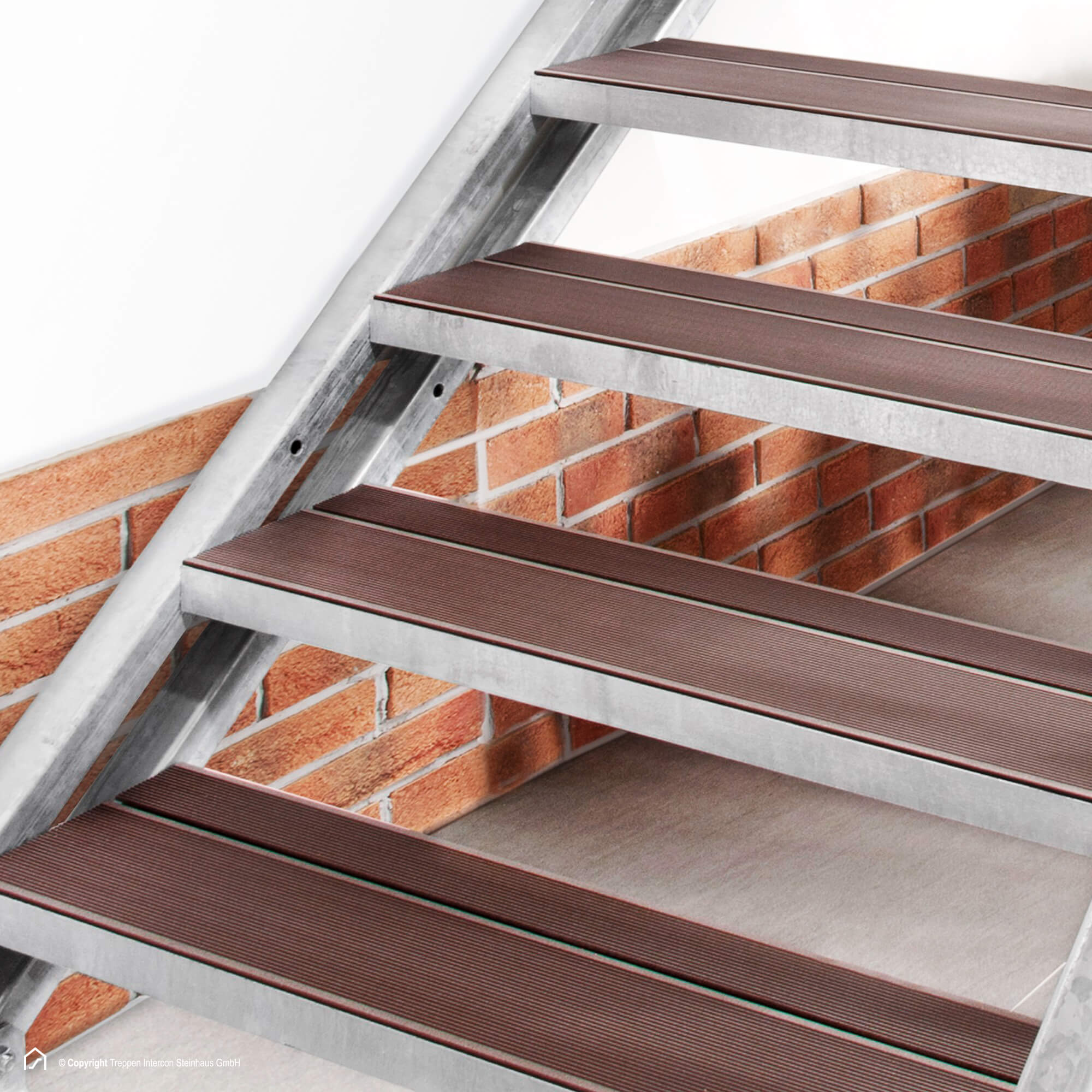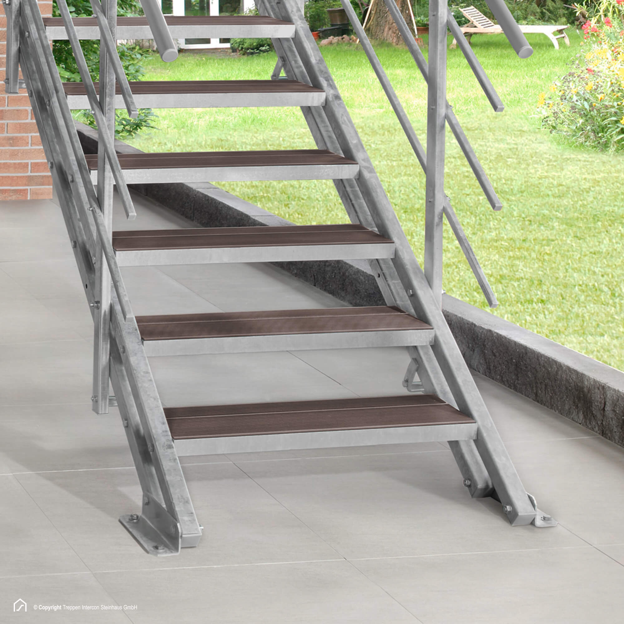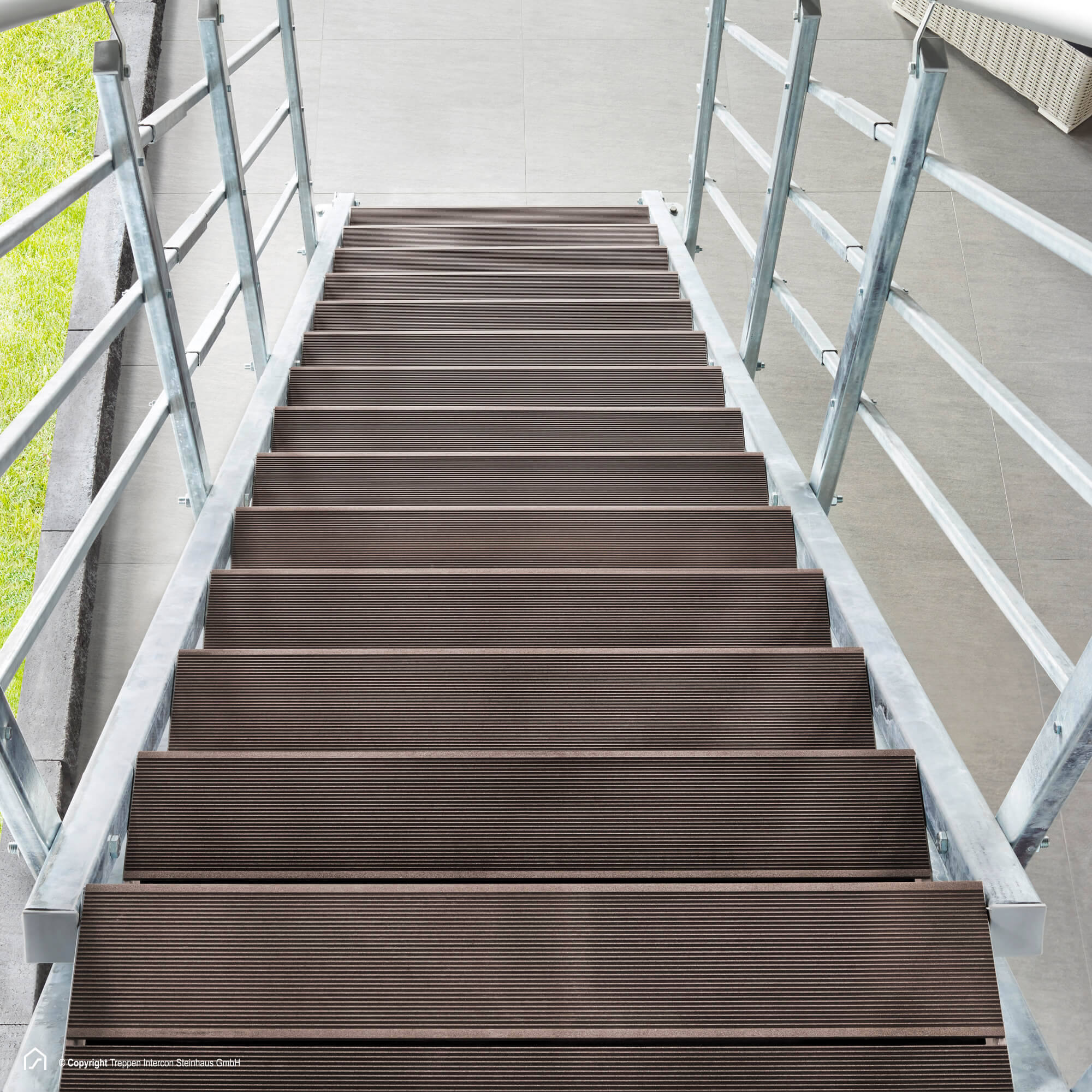 | Stufendesign: | Stahlstufen mit WPC-Auflagen, WPC Havanna-Braun, WPC Lava-Anthrazit |