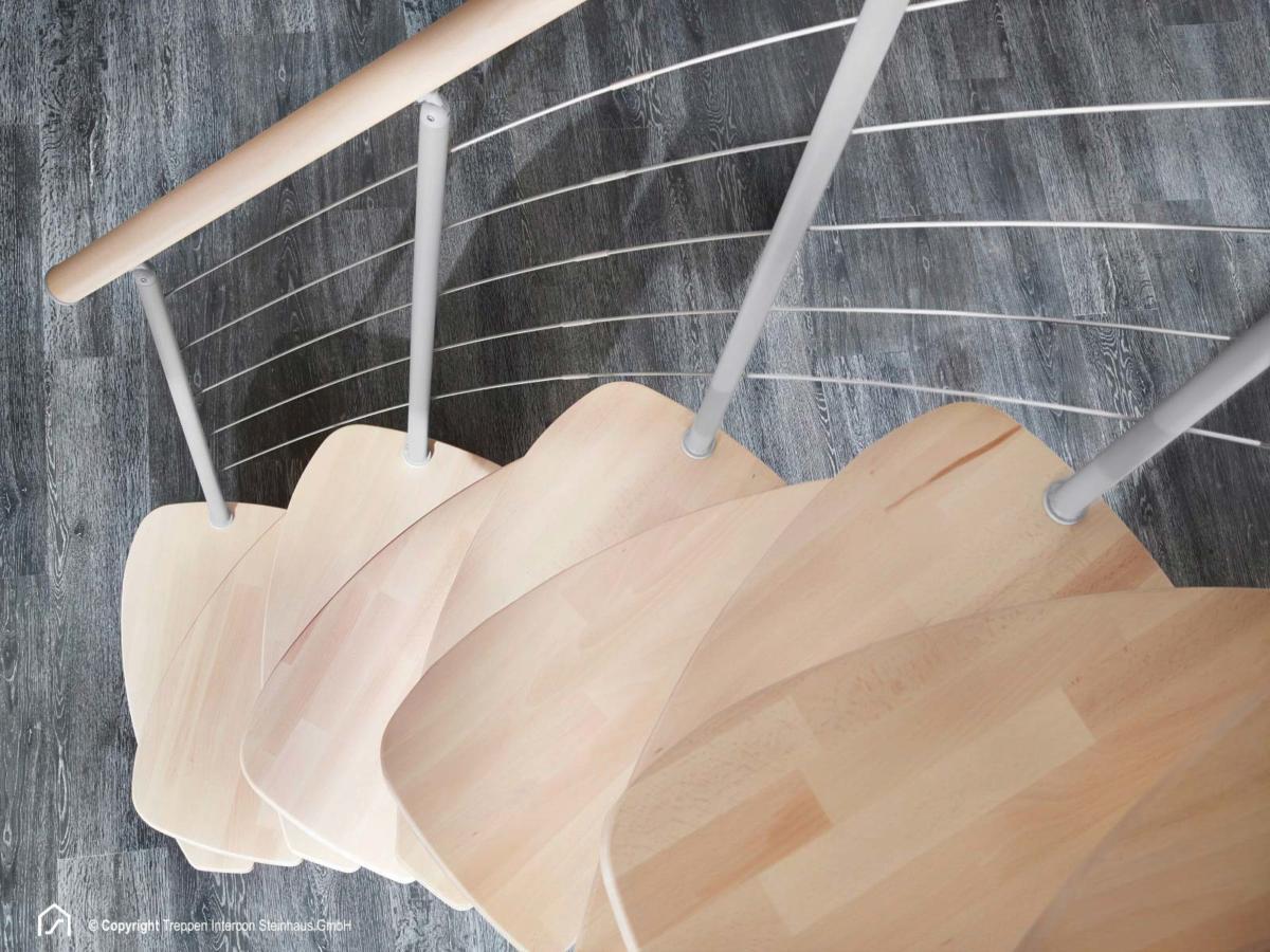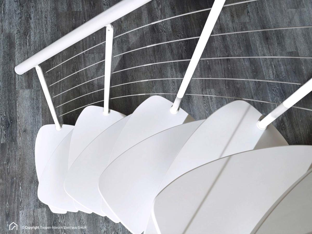Im Treppen Intercon Shop finden Sie diese Treppe in verschiedenen Metallfarben und Stufendesigns, ganz nach Ihrem Geschmack. Übrigens finden Sie diese Raumspartreppe auch in unserer Ausstellung. In der Bildergalerie können Sie sich einen Eindruck über die Variantenvielfalt verschaffen.