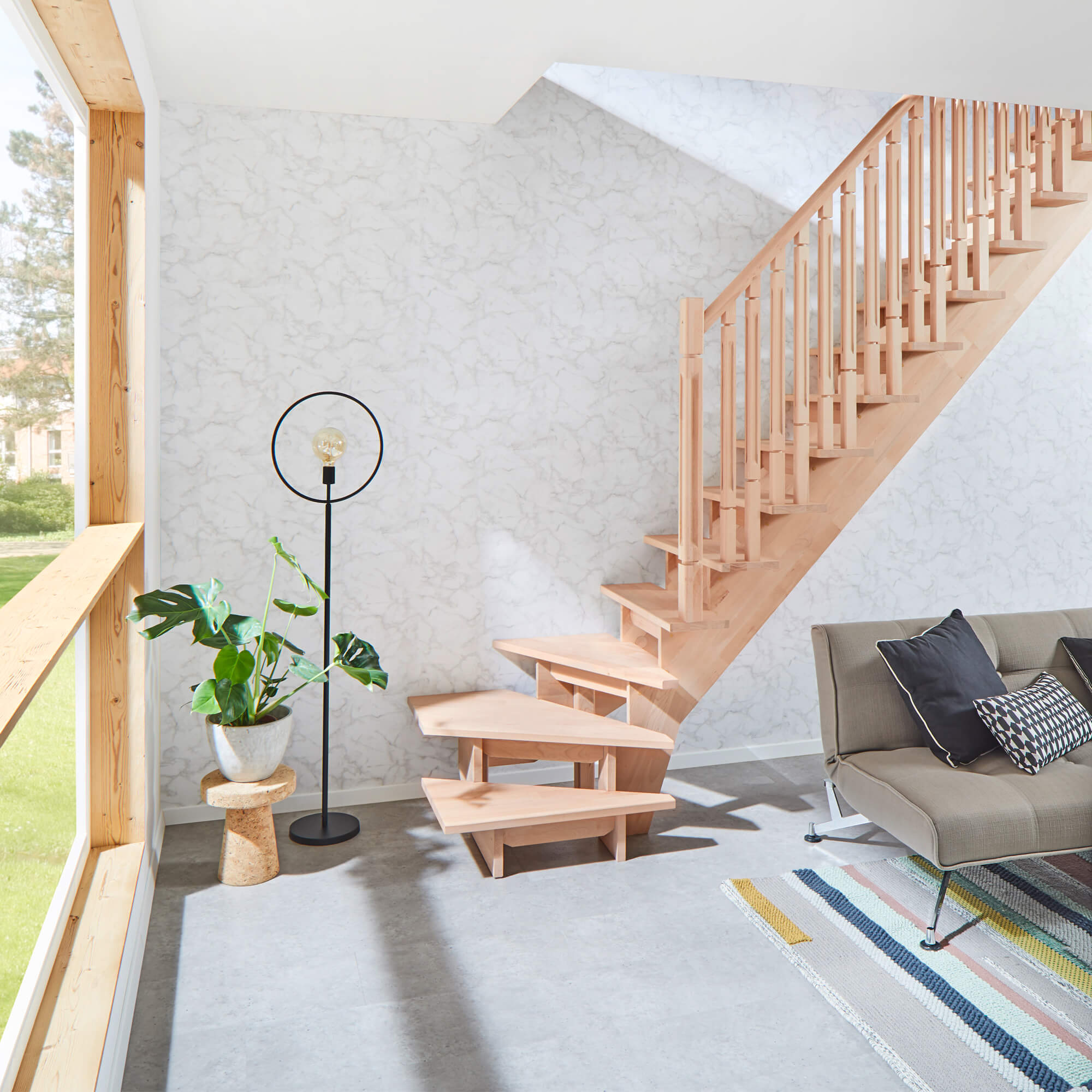 - Mit dem optionalen Geländer sichern Sie Ihren Auf- und Abstieg. Dank der verschiedenen Geländerdesigns passen Sie die Treppe an Ihren Einrichtungsstil an.