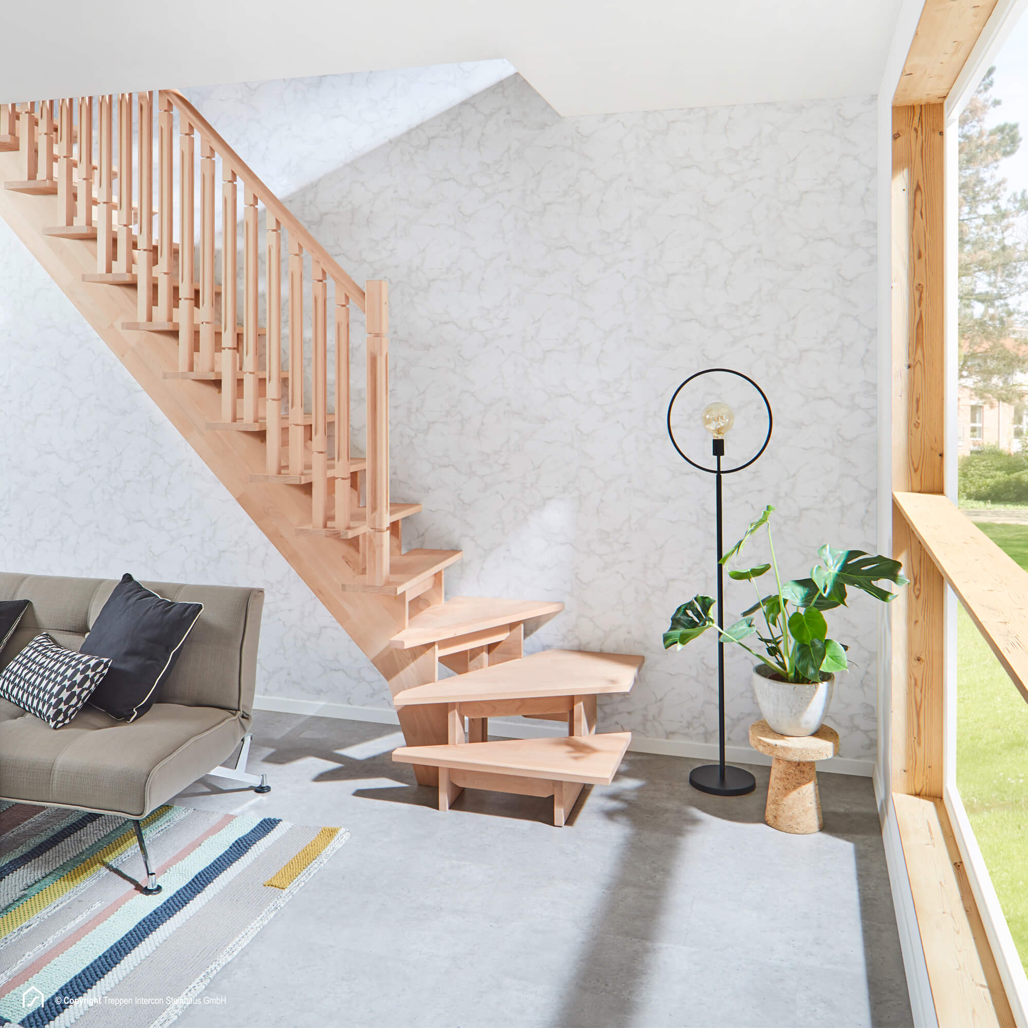 Massivholztreppe Intercon Nizza – die Satteltreppe aus massiver Buche