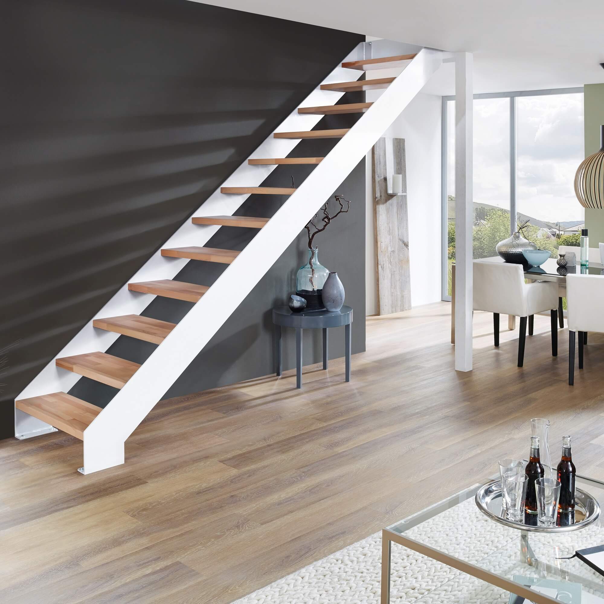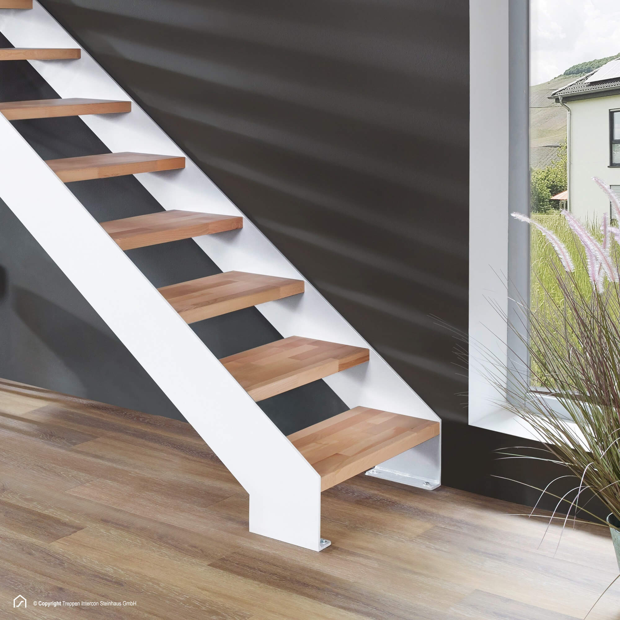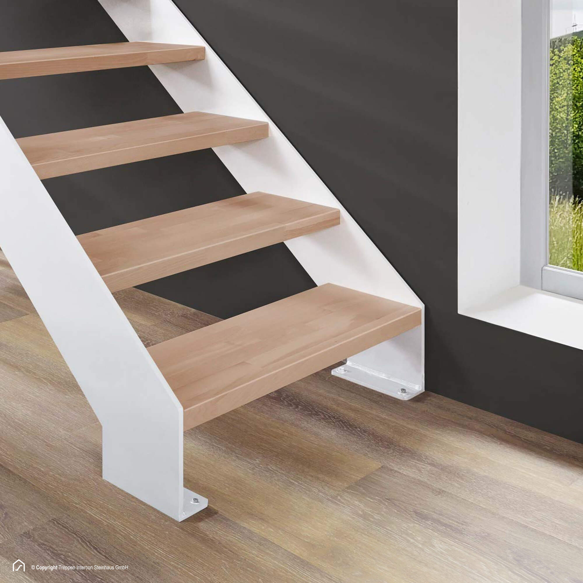 - Die Stahlwangen der Treppe verfügen über eine hochwertige Pulverbeschichtung in verschiedenen Farben.