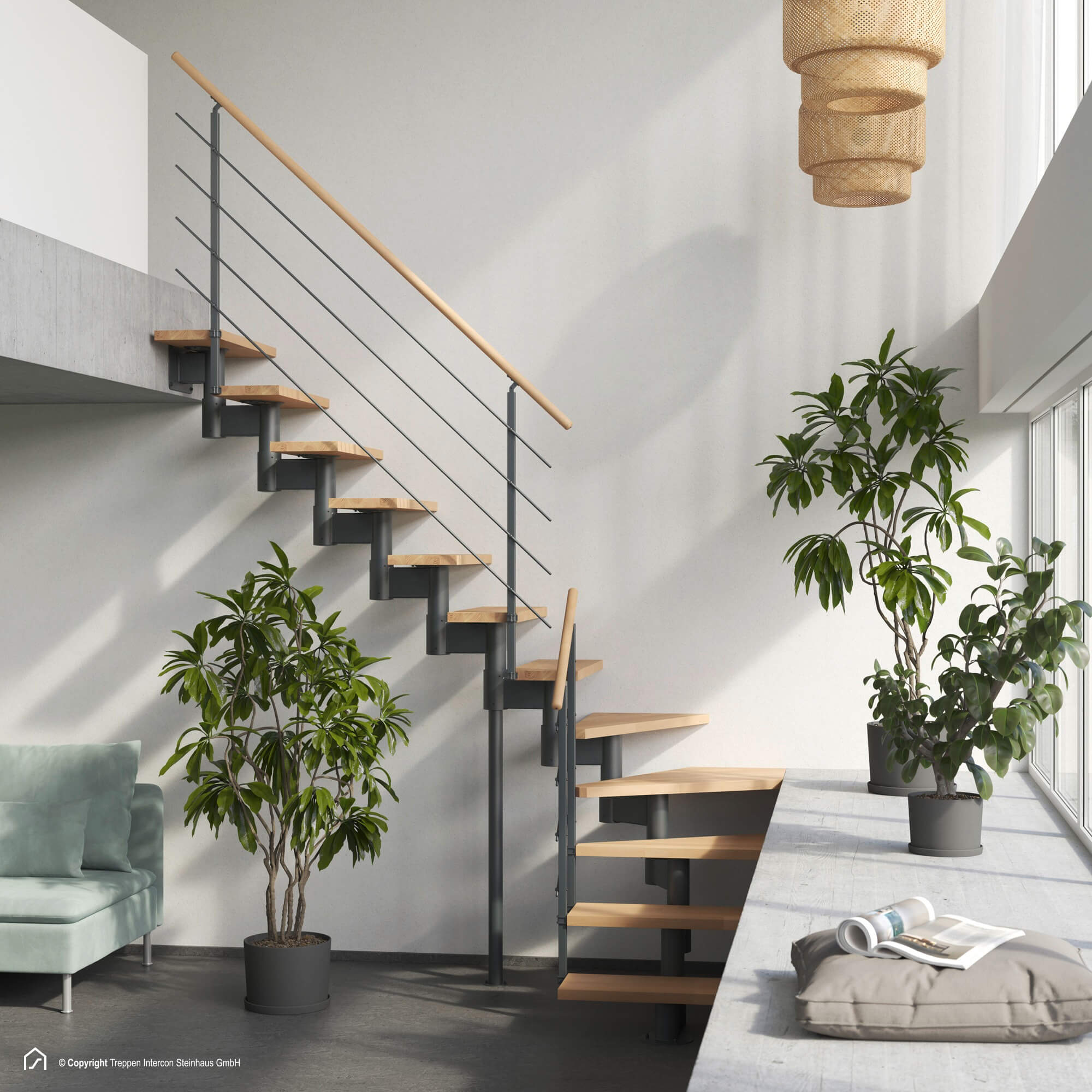 - Vollflächig begehbare Stufen sorgen für einen sicheren Auf- und Abstieg bei der Mittelholmtreppe Manhattan