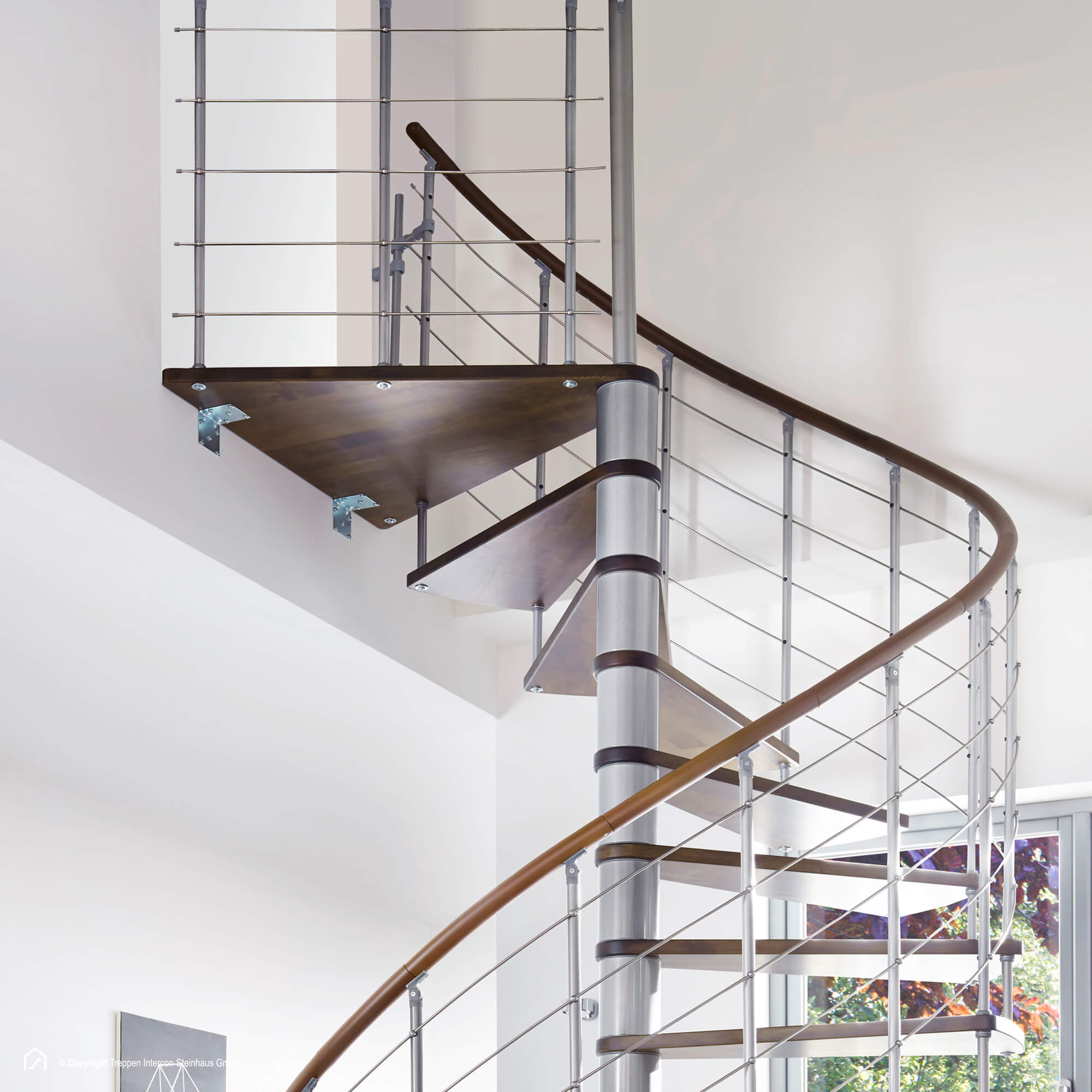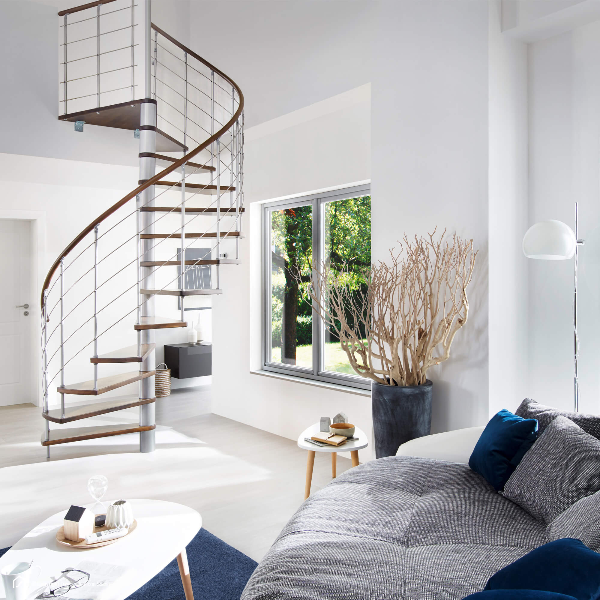 - Komfortable und zugleich platzsparende Wendeltreppe