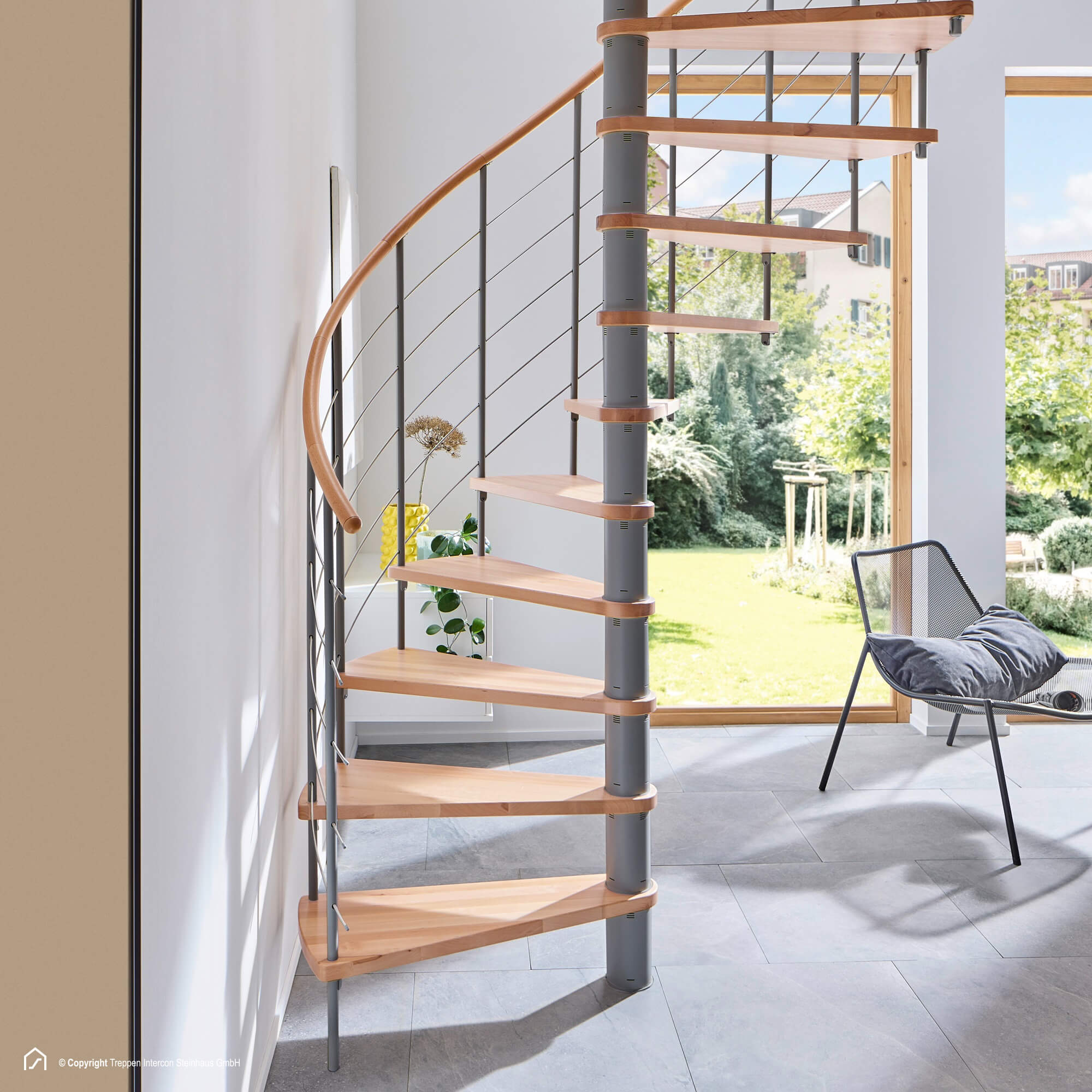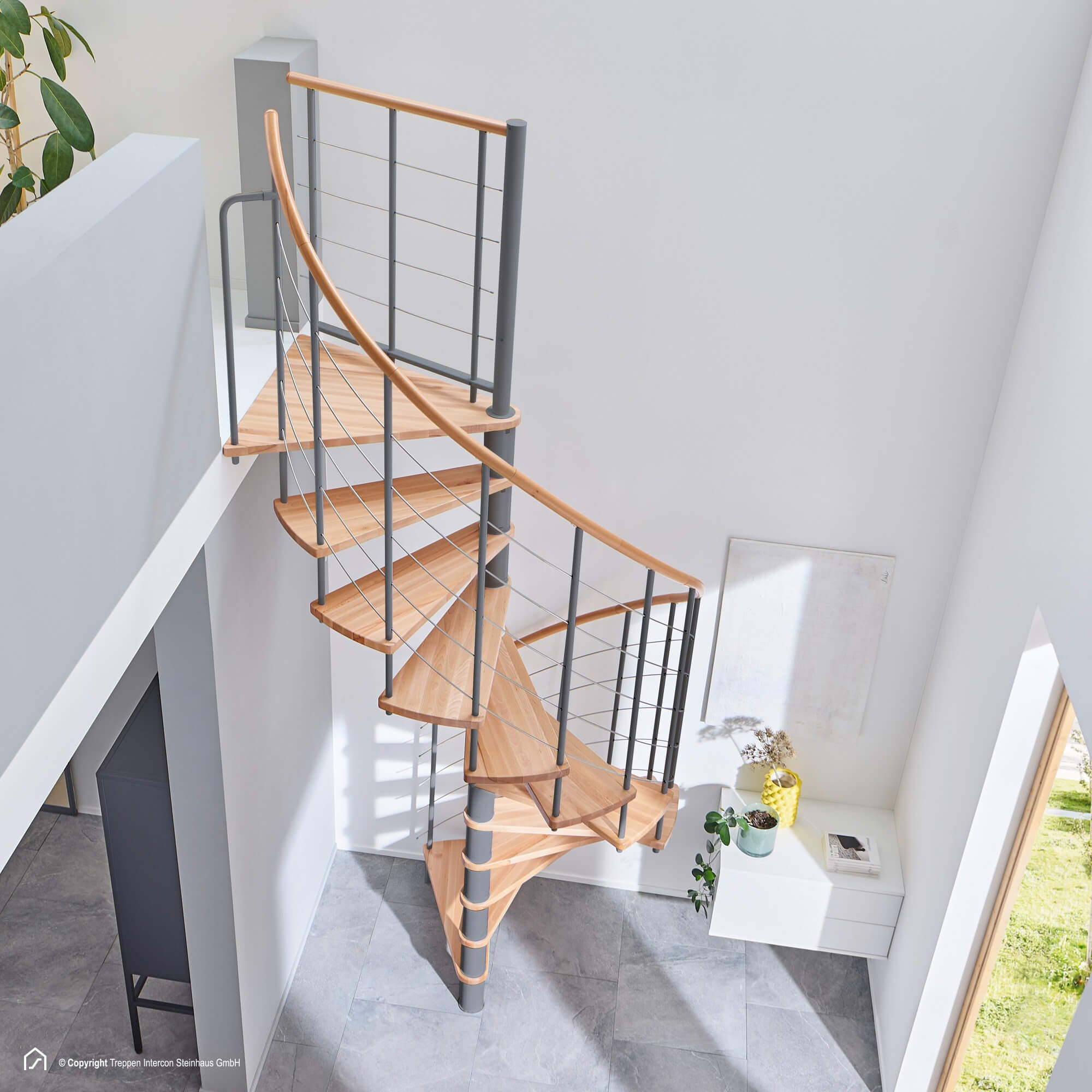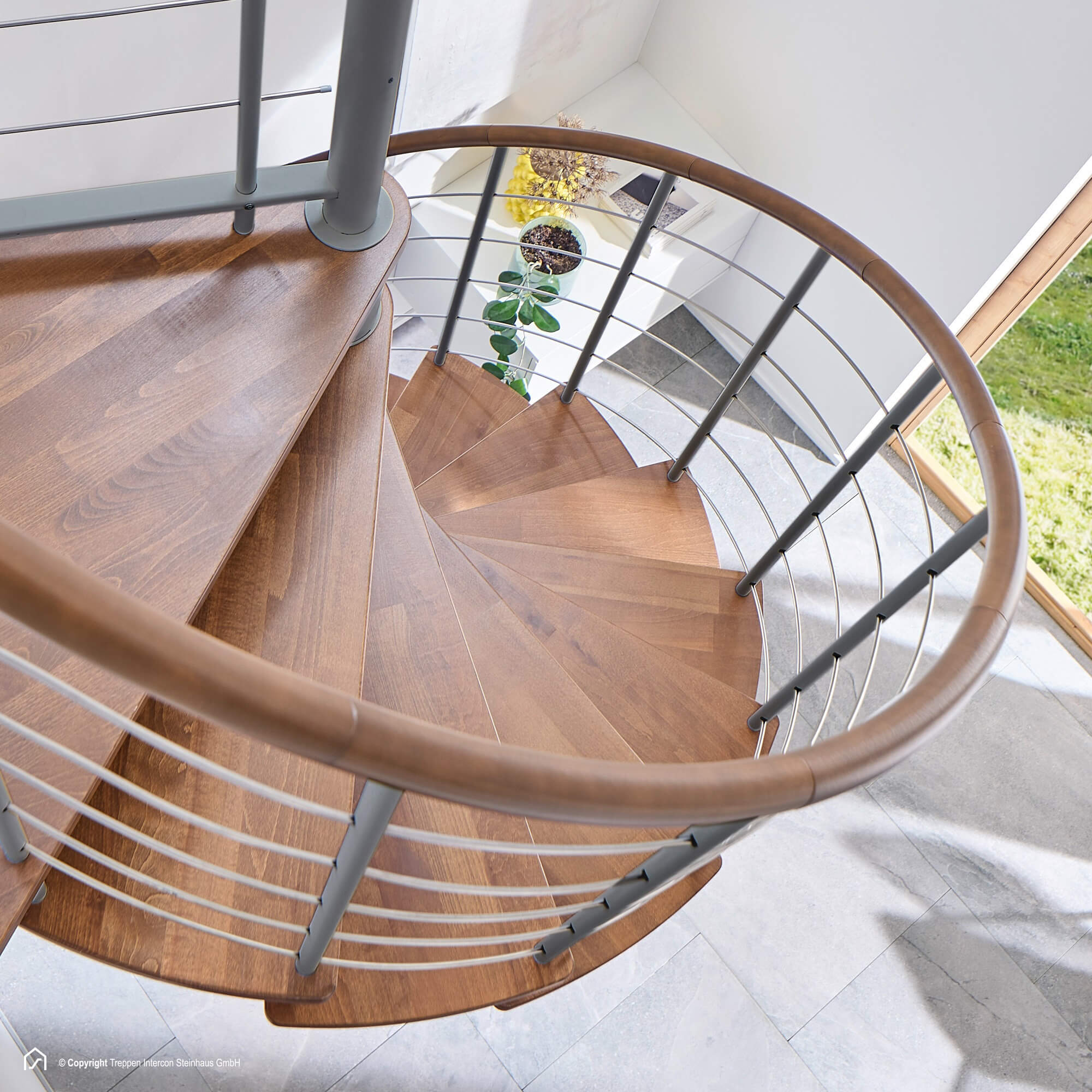 - Komfortable und zugleich platzsparende Wendeltreppe