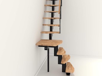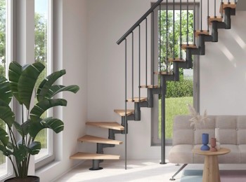 Die viertelgewendelte Mittelholmtreppe passt sich spielend leicht an Ihre räumlichen Gegebenheiten an und bietet durch ihre kompakte Bauweise einen sicheren Auf- und Abstieg.
